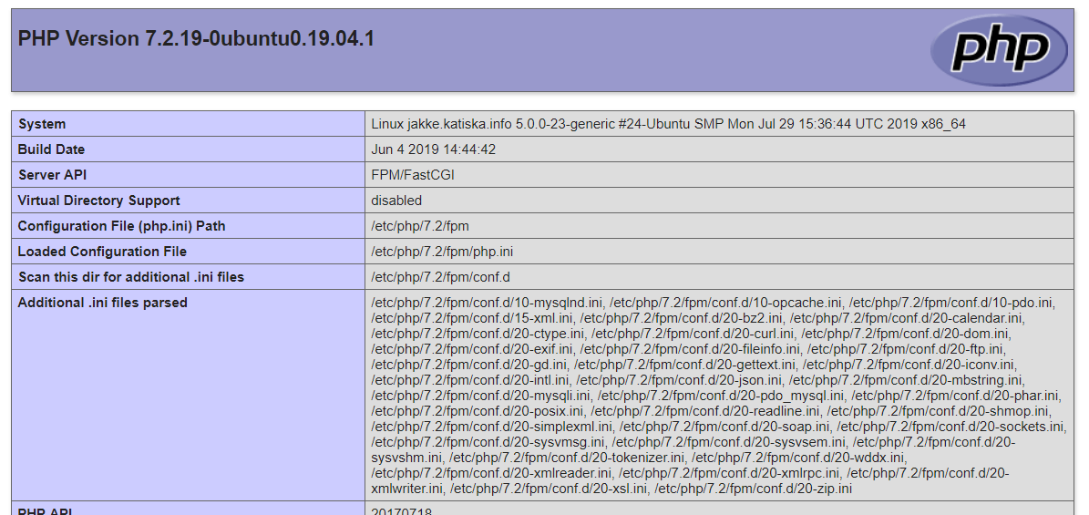 Jos sinulla in FPM asennettuna, niin php.ini sijaitsee hakemistossa /etc/php/7.3/fpm/php.ini – ja taas huomioi PHP:n versio.