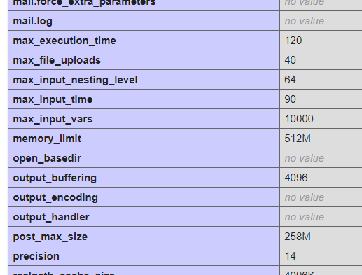 php.ini tiedoston arvoja