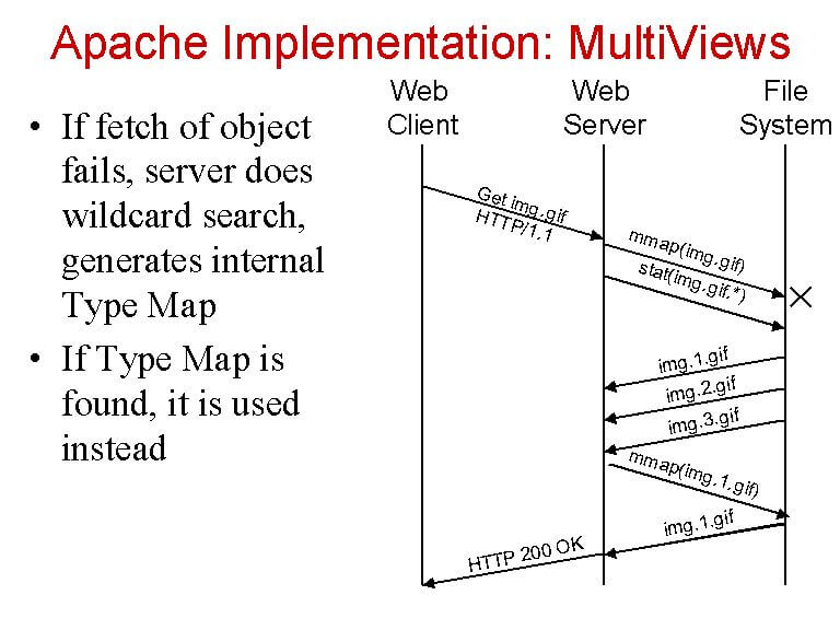 MultiViews mahdollistaa Apachelle sopivan tiedoston hakemisen, kun pyydetään jotain mitä ei löydy. Silloin Apache menee sen hakemiston läpi, jossa MultiViews on sallittu ja yrittää löytää pyyntöön sopivan tiedoston. Jos ei löydy (tai Apachen mielestä löytyy, mutta se ei tiedä mitä tehdä sen kanssa), niin Apache antaa error 404. Useimpien osumien mukaan MultiViews on käytössä, kun tarjotaan useampikielistä sivustoa – ja joka kerta paikalle tuli aina joku, joka sanoi, että sitä ei kuulu käyttää siihen.
