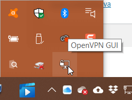 OpenVPN löytyy järjestelmäkuvakkeista (system tray) ja pääset valikoihin oikealla hiiren korvalla.