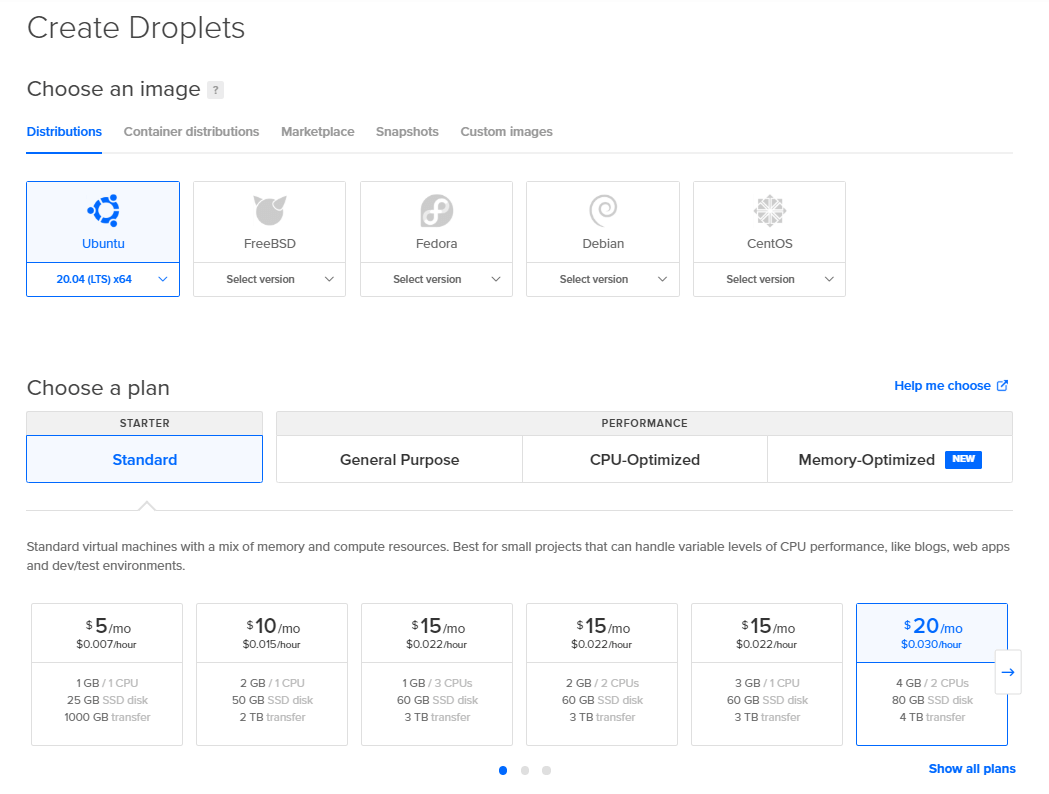 - Choose an image: Ubuntu 20.04 (LTS) x64