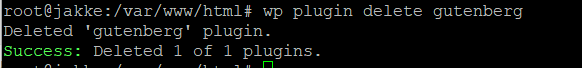 Ehkä Gutenberg olikin hyvä esimerkki. PHP-virheiden takia sitä ei saanut poistettua lisäosien hallinnasta. WP-CLI poisti sen kyselemättä turhia.
