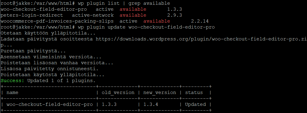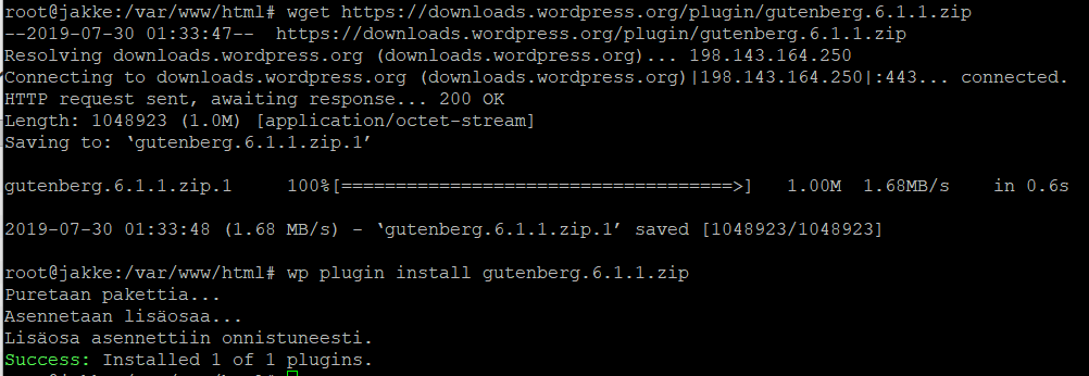 Jos sinulla ei vielä ole WP-CLI asennettuna, niin täällä on asennusohjeet.