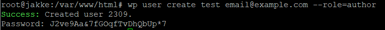 Uutta käyttäjää luotaessa --prompt tarjoaa jokaisen annettavan tiedon yksitellen täytettäväksi. --prompt toimii aivan kaikkien wp-komentojen kanssa.