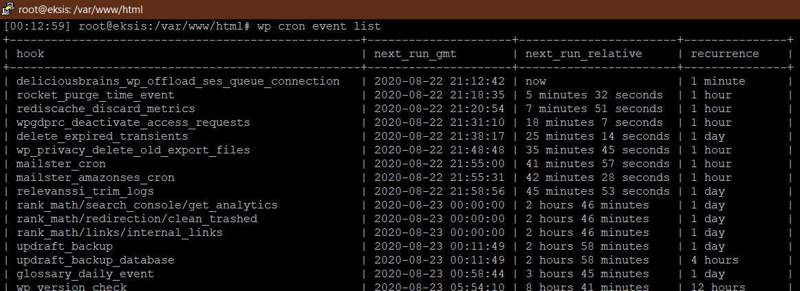wp cron event list